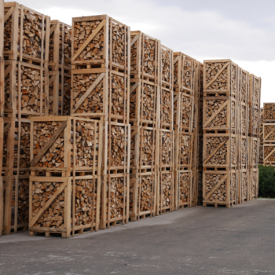 - Jest zapakowane w skrzynio-paletę lub karton co umożliwia składowanie drewna w bardzo wygodny sposób