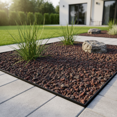 Grys Lava 8-16 mm jest uniwersalnym materiałem doskonałym do: obsypywania rabat, tworzenia ogrodów skalnych, obsadzania wokół tarasów i basenów, a także jako element dekoracyjny w nowoczesnych aranżacjach ogrodowych. Jego bordowe odcienie doskonale komponują się z roślinnością.