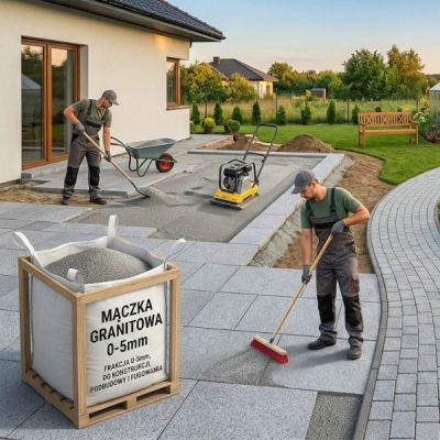 Mączka granitowa jest wykorzystywana przy układania kostki brukowej. Jest lepszym materiałem niż piasek czy jego mieszanina z cementem, bo nie ulega wypłukaniu.